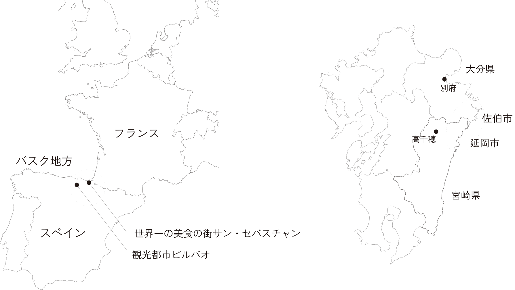 世界一の美食の街と言われるサン・セバスチャンを擁し、フランス・スペインにまたがるバスク地方をモチーフに、九州で1位、2位の面積を誇り、海・山・川の豊かな恵みを享受する延岡市と佐伯市が、「食」と「連携」をキーワードとして新たな経済・文化圏の形成を目指して、令和3年度まで取り組んできました。 これまでの取り組みにより磨かれた本市の「食」の魅力を引き続き県内外に発信するとともに、市内の料理人や生産者の連携を深め「美食の街のべおか」を目指し取り組みます。